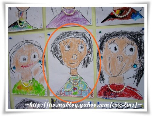 不過,難得這回,看到他在學校展示的媽媽畫像,倒是畫得很棒耶!